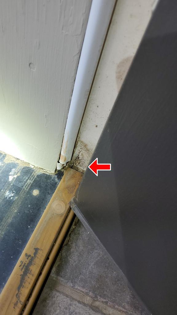 The plumbing clean out cover is damaged. I recommend qualified contractor repair or replace as needed. | ||