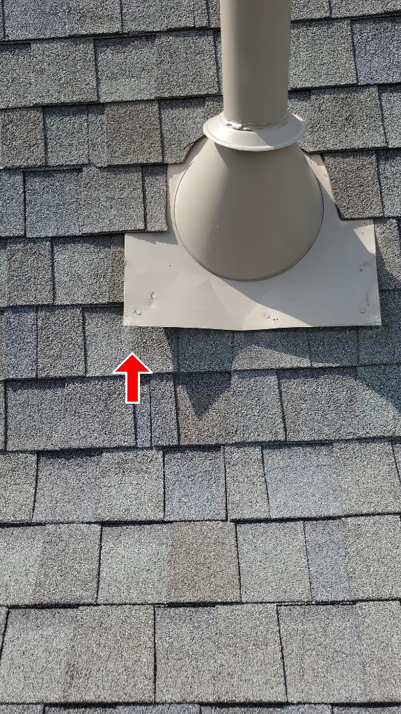 | The fasteners are loose or missing and the flashing is loose/lifted at the water heater vent pipe
